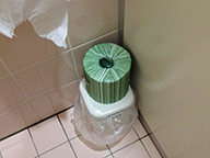 富良野のガラス館では、トイレットペーパー置きに色とりどりのガラス玉が敷き詰められていて可愛いかったです。 |